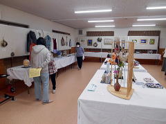 絵手紙、書道、陶芸、創作人形、銅板工芸、写真、絵画、木工細工、手芸、生け花など各ジャンルの作品約90点の多彩な作品が展示されました。
