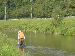 ![]() 国勢調査は人ばかりではありません。河川も国勢調査が行われていました。 10月9日内部川沿いの北側道路を通行中に、胸までのゴム長靴(正式名は?)、大きなタモや投網、バケツやその他もろもろの装備で身を固めた、見るからにプロといった4名のグループに出合いました。内部川探検で水性生物の調査をした時と同じ様子なので恐る恐る聞いてみるとやはり内部川の水性生物類の調査でした。 国土交通省が行っている「河川水辺の国勢調査」の委託を受けた専門の業者さんで、詳しくは国土交通省のホープページに出ているのでそちらをどうぞと言ってさっさと川に入っていきました。早速見てみると内部川そのものの名前は出ていませんが1級河川の鈴鹿川水系ということで5年ごとに調査しているようです。なかなか目につきにくい行政の奥深い業務の一端を知ることができました。 なお、河川水辺の国勢調査のURLは下記のとおりです。 http://www3.river.go.jp/index_mizube.htm