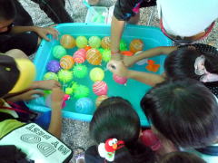 内部東小学校の玄関前庭には販売コーナーやゲームコーナーと、今年から始めた流しそーめん、体育館にはニュースポーツの体験コーナーがあり、子ども達は屋台の食べ物やゲームを行ったり来たり。19時からは恒例のビンゴ大会で盛り上がり、夏のひとときを大いに楽しんでいました。