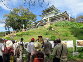 一行42名は最初に小牧城を訪れました。この城は名古屋の実業家が私財を投じて昭和42年に建てた鉄筋コンクリート製の城で、小牧市に寄贈され中は小牧市歴史館となっています。